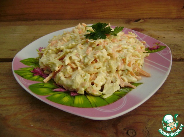 Очень вкусный и свежий салатик. Салат добавила свой с огорода.