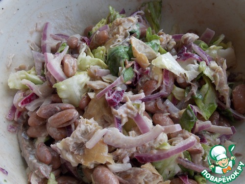 Следующее блюдо - "Тосканский салат из красной фасоли" https://www.povarenok.ru/recipes/show/74456 - опять же от Ольги Бабич. Очень вкусно. Я еще добавила в него копченой макрели (2 рыбки на указанное количество). Получилось вообще замечательно!