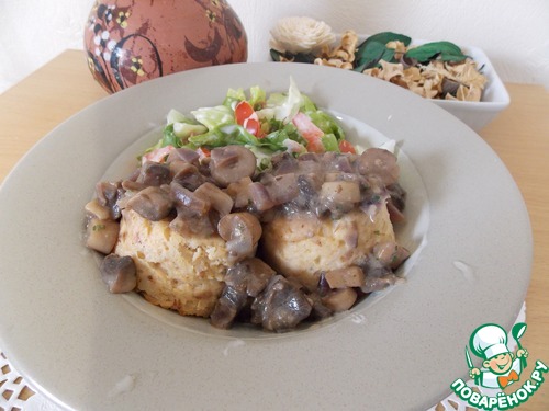 А теперь "Крупеник "Дружба" с грибным соусом" https://www.povarenok.ru/recipes/show/71855/ - от Мисс. Очень неплохо. За счет творога крупеники имеют приятный кисловатый привкус. Соус тоже хорош.