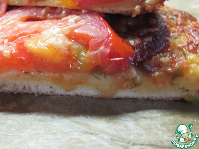 Делала половину норму. Получился большой пирог. Очень вкусный. У меня были небольшие отступления от рецепта. Вместо майонеза – кетчуп, и еще добавила колбаски. Съели с мужем за вечер. Обязательно буду еще готовить.