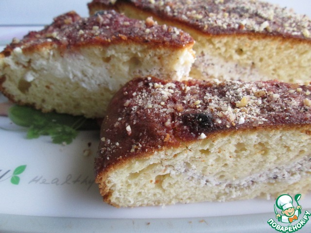 Пирог пекла с комбинированной начинкой: в одну половину творога добавила кокосовую стружку,
