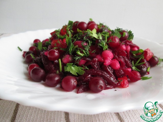 Ведь там, где есть фасоль, это всегда сытно и "мягко"! Клюква придаёт салату освежающие
