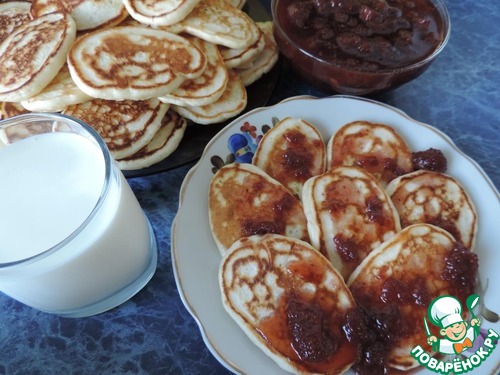 Кому к чаю, кому с молоком оладушки с клубничным вареньем