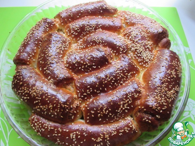 Давно приглядела рецепт. Очень вкусный и ароматный хлебушек. Я бы его даже пирогом назвала. И очень понравилась формовка. И нарядно и удобно отламывать порционно.