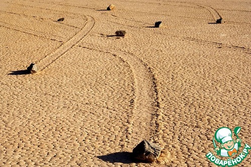 Камни имеют свойство переворачиваться с боку на бок, маневрировать, а иногда даже кувыркаться. Наиболее активными они становятся в центре высохшего озера. Изредка эти "путешественники" меняют свою траекторию благодаря вмешательству людей.