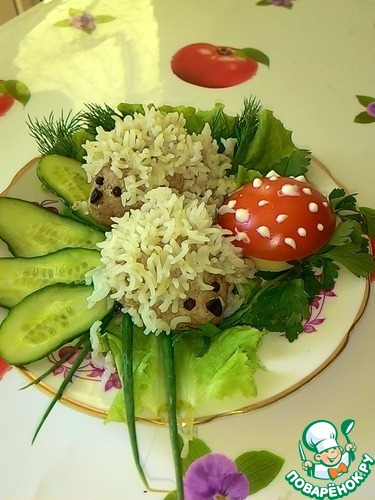 Смешные ежики по рецепту Людмилы(beautiful woman). Делаются просто, выглядят на тарелке очень прикольно! Нюанс: готовые ежики требуют аккуратности, чтобы не растеряли иголочки-рисинки!