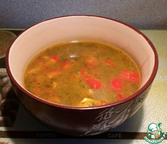 Хотела слукавить: приготовить это блюдо в мульте, но потом решила не менять первозданность рецепта, и по честному готовила 2 часа. Запах очень аппетитный, добавила еще хмели-сунели (все-таки грузинское блюдо). Очень вкусно, сытно и по овощному мясно