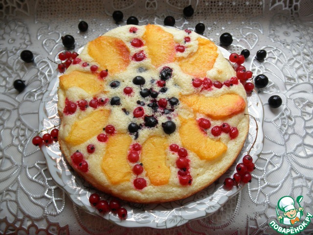 С таким блинчиком любое утро станет добрым! Форму взяла поменьше, поэтому у меня почти бисквит получился Очень вкусно, ягодно и ароматно! Брала персик, черную и красную смородину.