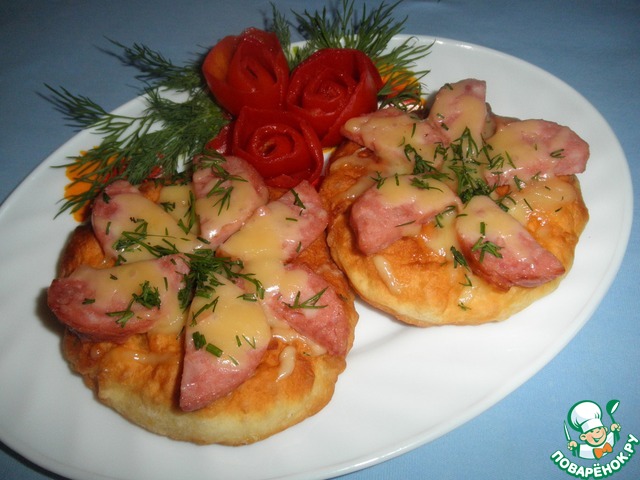 Ну, очень вкусные! Половину сделала сладкие, сверху полила сметана+сахар; а во вторую половину, пустила в ход маленький скучающий в холодильнике кусочек колбасы и сыр!