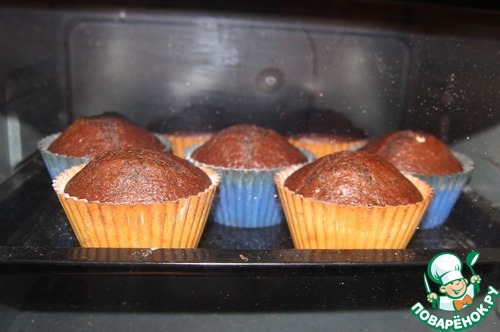 Тесто разлить или разложить ложкой по формочкам. Выпекать при температуре 185 градусов, в режиме верх-низ, на среднем уровне, около 30 минут.