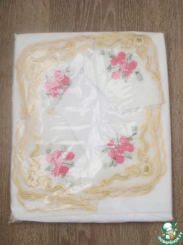 Вот такая белоснежная скатерть с 12 салфетками с очень красивой,нежной вышивкой!Как раз по размеру моего стола!