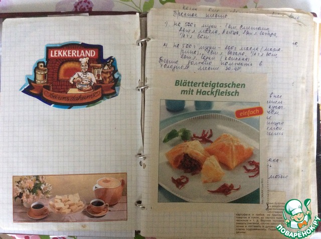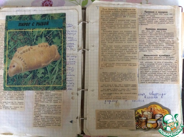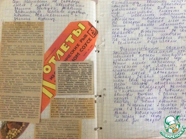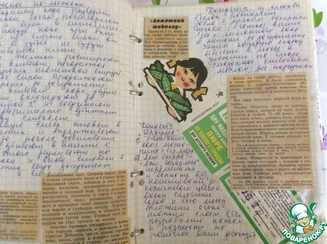 у меня тоже есть тетрадь кулинарная. и тоже рисунки дефицитными фломастерами и вклейки. узнаю себя. но моя не такая глобальная, что ли.