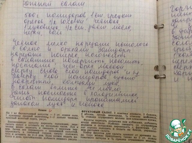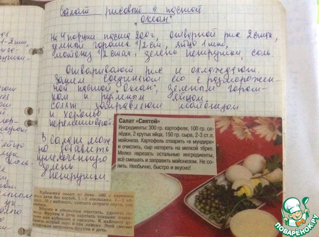 Наверняка, эти рецепты стали скрепляющим цементом вашей сем.жизни! Пусть такие же тетрадки сохранят твои дочь и сын!.. они - нестираемые впечатления и отпечатки жизни!