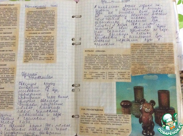 сейчас смешно смотреть на эти картинки, но они тоже хранятся в моей кулинарной книге...
