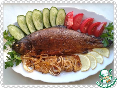 Великолепная рыбка! Очень и очень вкусно!!! Маринад-супер, а какой аромат!!! Готовила в духовке (хотела в аэрогриле, но не уместилась рыбка). А лучок получился замечательный, хрустящий!