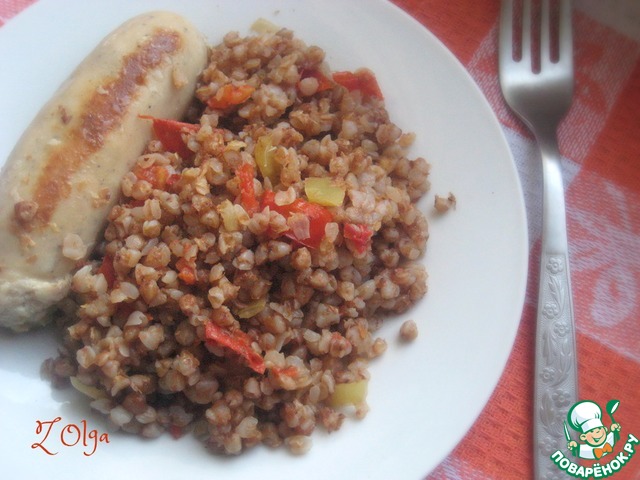 «Гречка с томатом» https://www.povarenok.ru/recipes/show/90283/ по рецепту Олеси a-lesa. Понравился рецепт! Вроде бы и гречка та же, обычная, а уже заиграла новыми вкусами и не так скучно ее было кушать!
