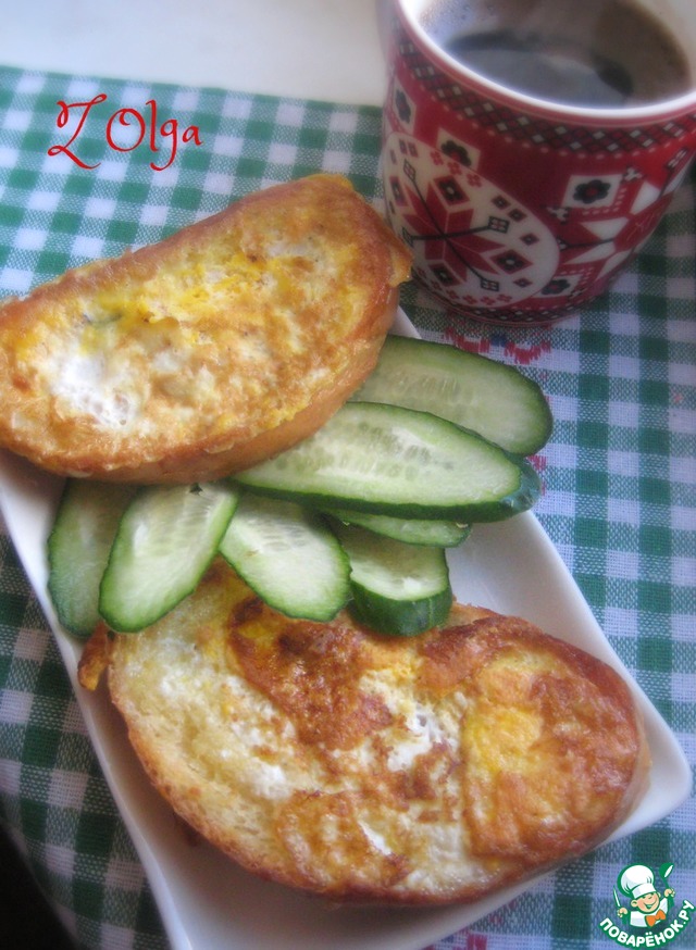 «Быстрый завтрак «Яйцо в батоне» https://www.povarenok.ru/recipes/show/109078/ по рецепту Алисы Alice Ricci. Отличный получился завтрак, спасибо за замечательную идею! Быстро приготовили, быстро съели и быстро разбежались по своим делам .
