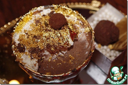 Только полукилограммовая плитка такого шоколада сама по себе стоит около 2600 долларов. Все яство подается в бокале, украшенном золотой каемкой, золотая ложечка украшена алмазами. В состав мороженого к тому же еще и входит 5,7 грамм съедобного 23-каратного золота!