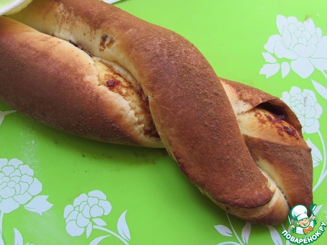 Делала половину нормы. В начинке яблочное повидло. Сверху смазывала молоком и посыпала корицей. Очень вкусно. Немного потренируюсь и получится так же красиво, как у автора.