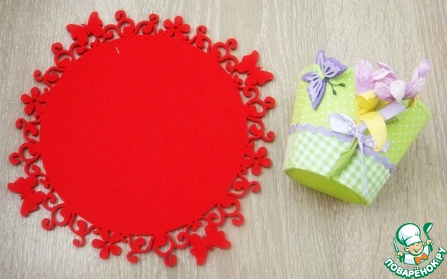 Яркая мягенькая подставка под тарелку с ажурными бабочками.Чудесная декоративная корзинка потрясающего цвета,и снова с любимой бабочкой!Сплошной позитив!