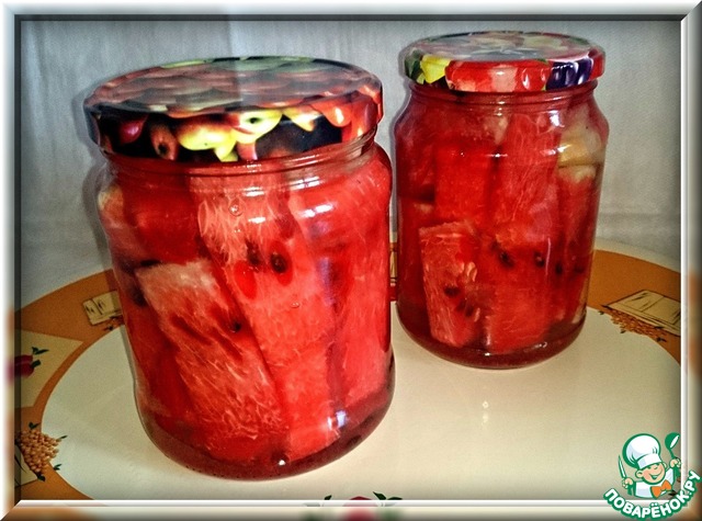 Всё быстро,просто!(единственное отступление от рецепта:срезала корочки,чтоб больше в банки вошло).Как же здорово будет зимой отведать арбуз!