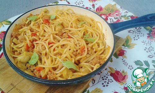 готовке использовала обычные спагетти - очень переживала, что все превратится в кашу или макарошки склеятся - но результат меня покорил! Очень сытно, вкусно и просто!