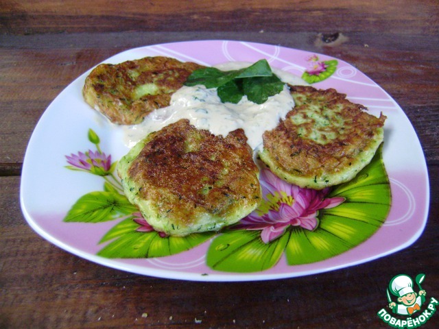 Оладьи из молодого кабачка с чесноком, мятой и соевым соусом Kikkoman