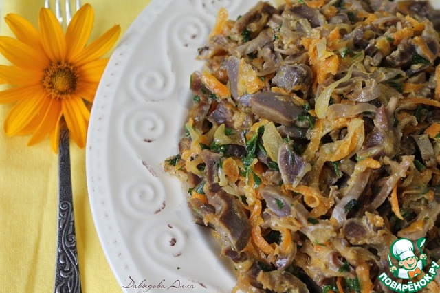 4.Теплый салат из куриных желудочков от LNataly https://www.povarenok.ru/recipes/show/110768/