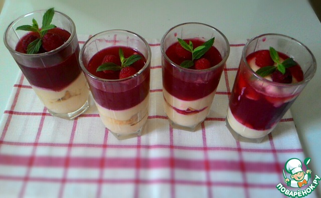 И в завершении застолья вкусный и ароматный творожно-малиновый десерт по рецепту Людмилы. Нежный, прохладный - то что надо летом! Очень рекомендую попробовать! https://www.povarenok.ru/recipes/show/111675/