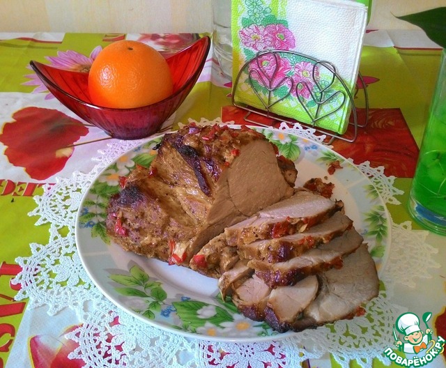 На горячее я подала изысканное запеченное мясо по рецепту Мариночки. Мясо божественное! Таяло во рту! А вкус! Хотела потом кусочек в холодном виде попробовать, да куда там!.. Придется для этого повторить мясо на бис(и сторожить, а то опять горяченьким улетит!)
