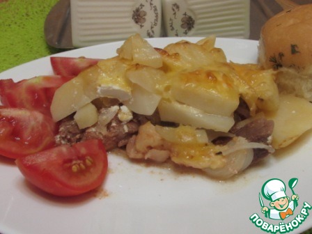 Вот ни чего нового в рецепте- всем известный картофель по-французски, НО получилось по-новому вкусно! Не знаю в чем суть, Наташин рецепт нам очень пришелся по вкусу. Испытанный временем рецепт заиграл по-новому, наверно дело в маринаде для мяса. Спасибо за вкусность, Наточка!