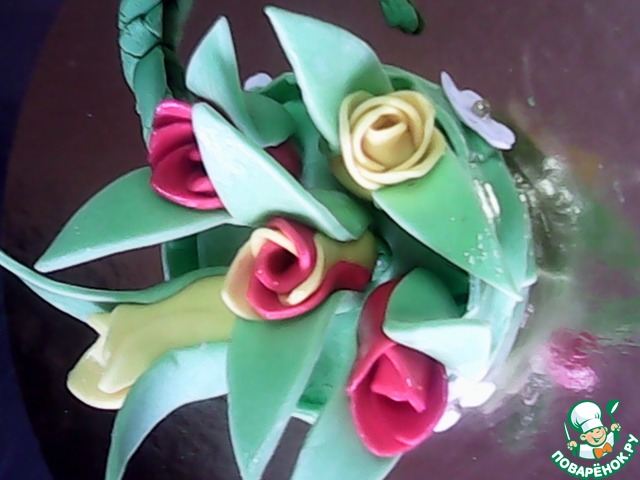 Вкус из детства , очень люблю ’’ Мишку’’. По бортам у меня корзинка , а сверху розочки и зубики!