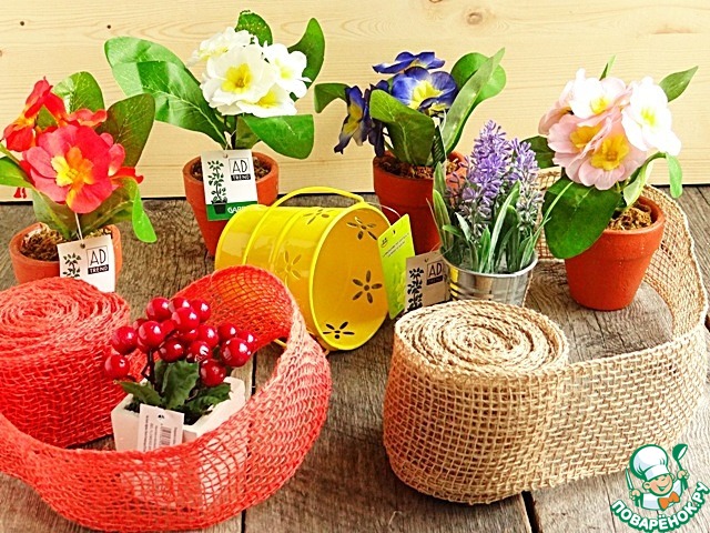 С любовью подобранный декор для моих фото: много маленьких искусственных цветов, красивое металлическое ведерко, декор из мешковины. Особенно мне понравилась лаванда в маленьком ведерке.