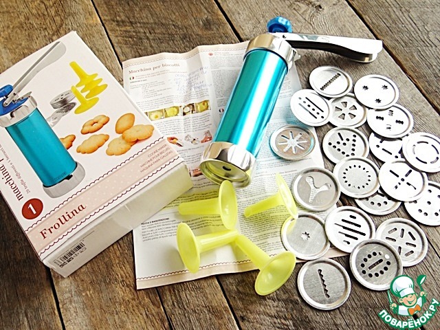 Это шприц-дозатор для печенья. Посмотрите, сколько много в наборе насадок!