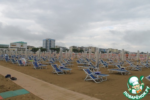 Море...какое оно теплое..Пляж длиной 8-9км. Шириной 400м. И главное шезлонги были бесплатно. Погода нас встретила не совсем дружелюбно, два дня был дождь даже гдето в Италии были затоплены улицы..но потом все наладилось и было солнце и 30 градусов тепла.