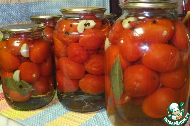 А это наш первый с мужем опыт по консервированию помидоров. Мы добавили немного специй и чесночка! Не терпится попробовать, будем ждать зимы!