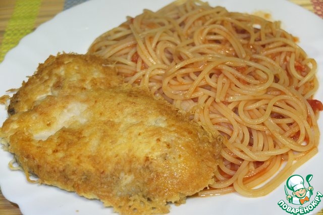 Вчерашний ужин был у нас итальянский, благодаря Танюшиному рецепту Курица миланьезе со спагетти от Джейми Оливера Вкусно, не то слово! Курочка нежная и сочная в хрустящей корочке, соус ароматный!!
