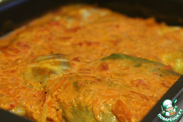 Впервые готовила голубцы. Муторное это дело. Но результат отличный, очень вкусно. Готовила все по рецепту, только фарш брала свинину+говядину и в заливке не использовала майонез.