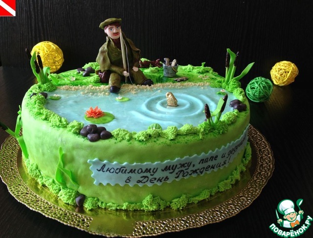Торт для рыбака, под мастикой "Панчо", диаметр 28 см, вес чуть больше 4 кг.