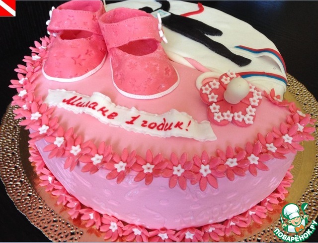 Одна часть для малышки - 1 годик, внутри "Маульвурфторте" , украшение - топочки и пустышка:
