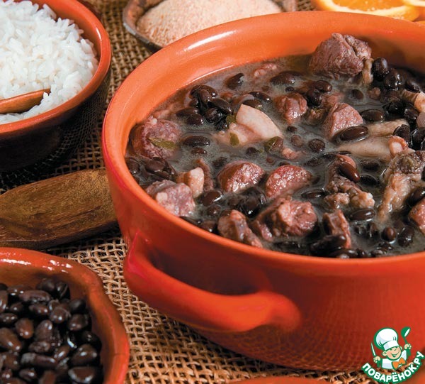 Безусловно, это самое популярное блюдо в Бразилии. По одной версии, фейжоаду триста лет назад придумали рабы, завезённые в Бразилию из Африки. Они смешивали куски свинины, остающиеся от хозяйского обеда, и чёрные бобы — традиционный для тех времён бразильский корм для рабов и животных. Со временем португальцы в это блюдо добавили сосиски и колбасу, индейцы — фарофу (смесь муки маниоки с маслом). Сегодня фейжоаду готовят из фасоли, различных видов мяса, специй, муки маниоки, подают в глиняном горшочке с капустой, ломтиками апельсина, соусом из перца и, по желанию, с рисом. В каждом регионе фейжоаду готовят по-разному, с различными добавками.