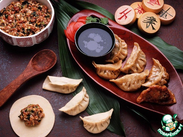 Цзяоцзы - это одна из разновидностей китайских пельменей. Представляют из себя тонкое тесто с начинкой из мяса и овощей , реже из морепродуктов. Готовят пельмени на пару, варят или жарят в растительном масле.Сами по себе Цзаоцзы не острые и не соленые, поэтому их чаще всего подают с пикули из чили, смешанными соевым соусом. В Китае принято готовить пельмени к новогоднему столу.