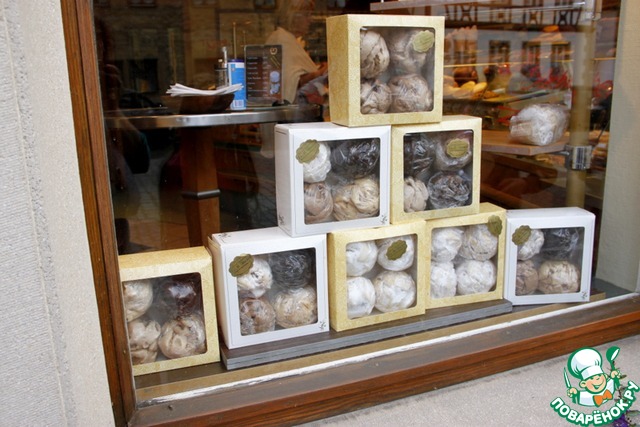 Есть у Ротенбурга и свой необычный специалитет - вот такие снежки-выпечка - шары разных размеров, продающиеся в булочных и кондитерских, с различной глазурью: