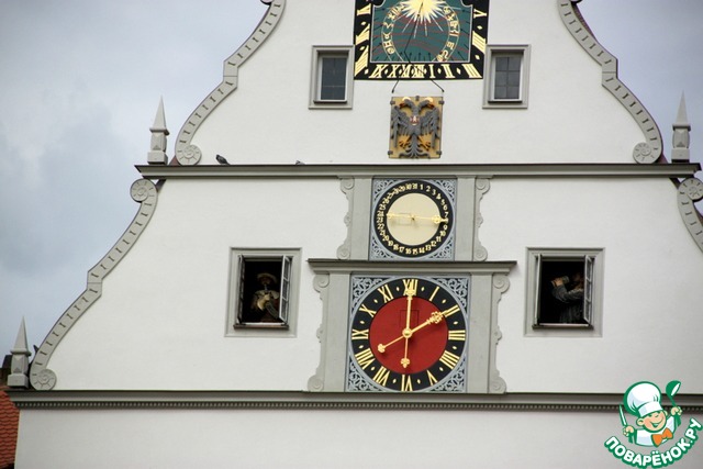 Итак, дело приближалось к обеду и городские часы трубили на площади, напоминая, что нуНа ...выпить (см. окошко справа), но а с закусью, это как Бог вам пошлет... По поводу часов и пьющего бюргера, спасшего (как всегда) город, существует легенда, которую вы услышите от экскурсовода.
