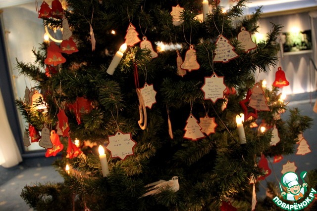 А вместо надписи "Здесь был..." можно написать на бумажной игрушке, на любом языке все, что хочется и повесить на живую елочку, у выхода...