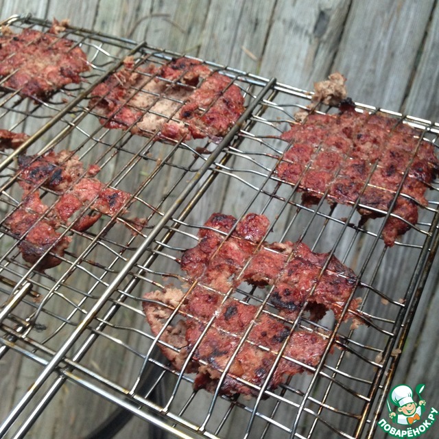 Я сначала попыталась было расстроиться по этому поводу, но поняла, что все не смертельно. И так и оказалось - то что оказалось на столе свелось полностью и с удовольствием, а потом, все что я сумела с решетки руками отодрать досталось собаке - и был на ее улице праздник, когда бы ей еще бизонятины перепало. Так что все остались довольны, а я взяла себе на заметку, что надо поучиться, на будущее, как жарить фарш на огне, чтобы бургеры получались и после снятия с решетки презентабельными. А чтобы Соньку (собаку) не обижать, обязуюсь каждый раз, когда жарю бургеры на огне, один ей отдавать