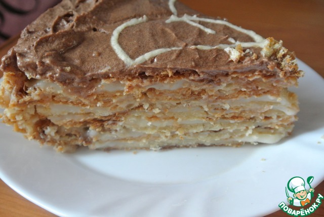 Торт скромный только по ингредиентам, даже и не знаю, можно ли найти более бюджетный наполеон. Вкус божественен. Есть его можно губами. Мне очень понравилось, что крем без масла. И коржи лучше пропитались, и съесть можно больше. Вот только с коржами проблемка - слишком хрупкие. Хотела себе в копилку такой рецепт, и вот нашла.