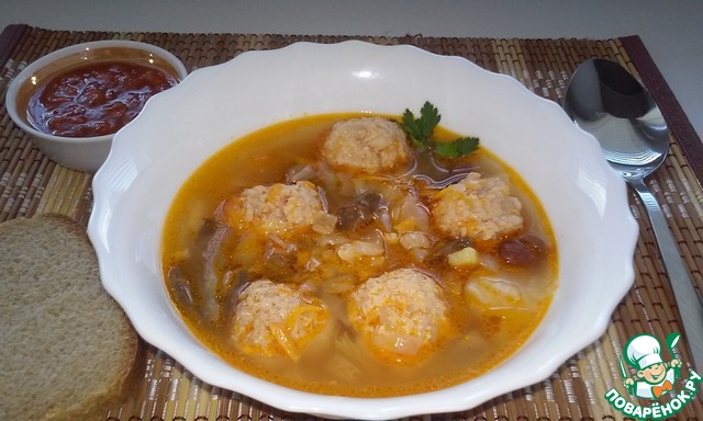 Фасолевые щи с фрикадельками и грибами от Наташи (ташуля7 ). Чудесный рецепт! Щи получились сытные, ароматные и насыщенные! Очень вкусно!