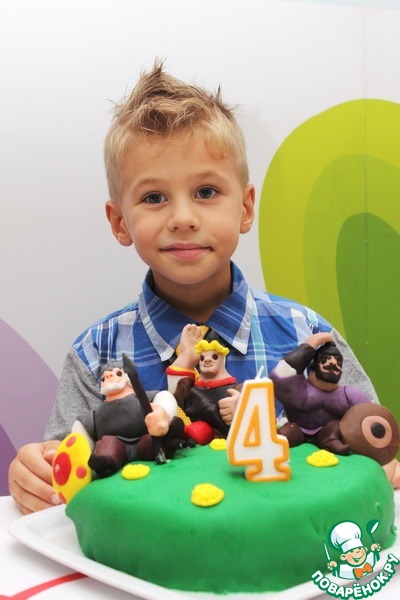 Какой славный мальчишечка! С Днем рождения! Фигурки на торте забавные. Это три богатыря, я правильно поняла?