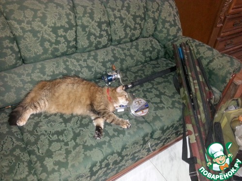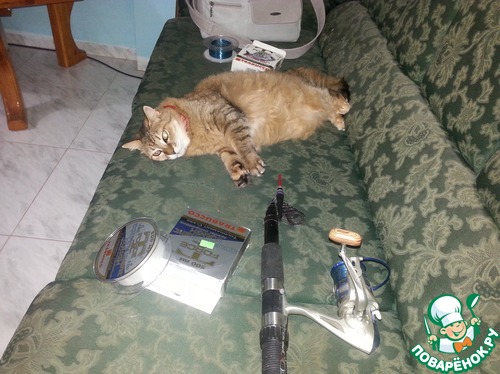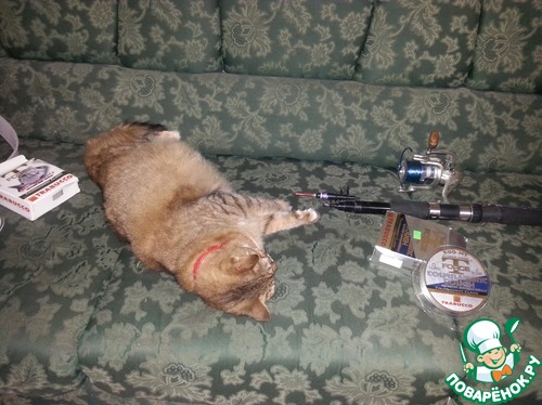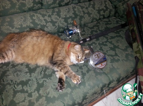 А у нас собачки раньше таким же образом "помогали" мужу собираться.Он боялся запутать леску всегда.Да,и на рыбалке помогали,особенно Чарлюша.Только муж удочки закинет,сразу в реку и плавает вокруг!